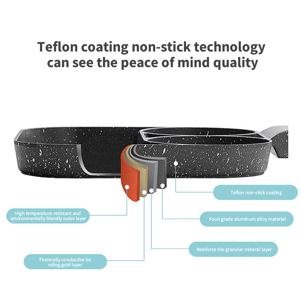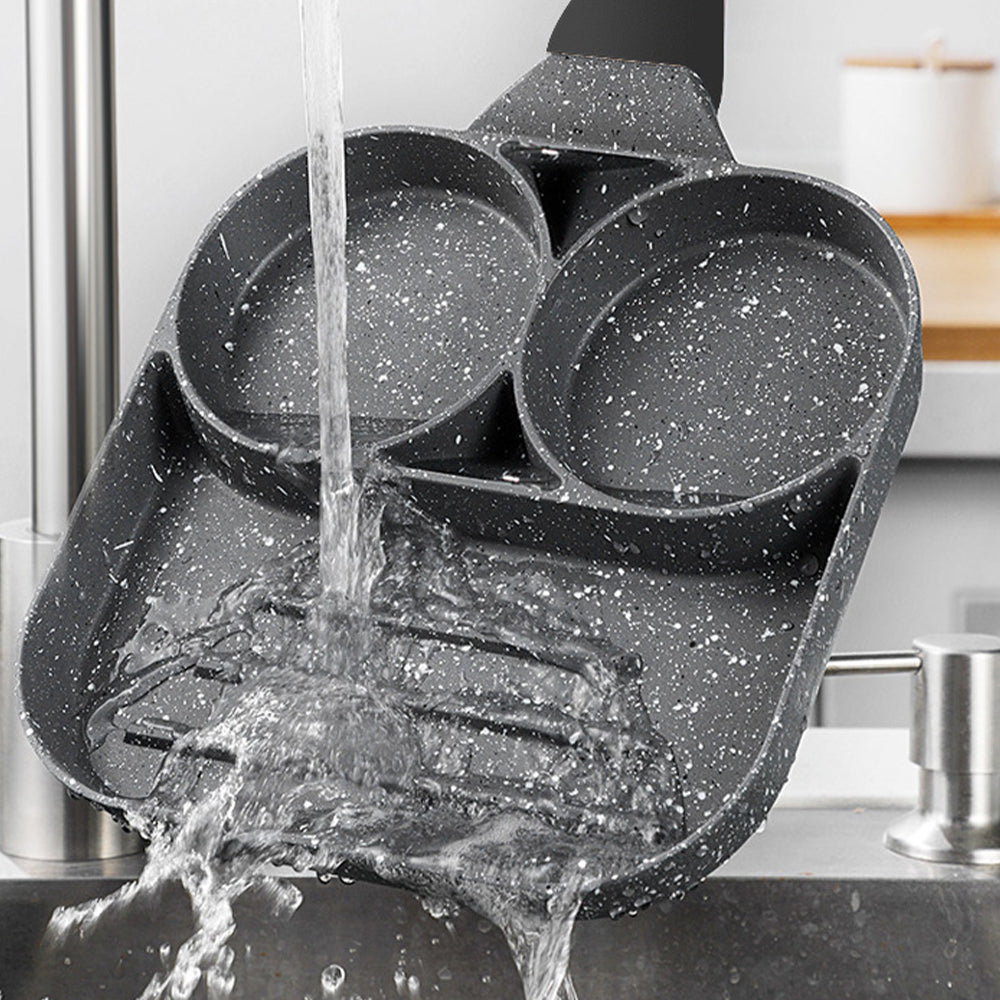 Poêle à frire antiadhésive à 3 sections 2 en 1 blanc Poêle à frire divisée Pancake Omelette Pan Alliage d'aluminium Oeuf frit